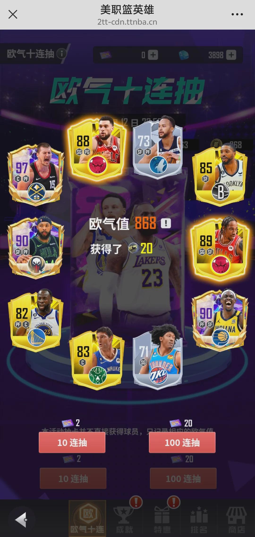 全新活动!NBA英雄2欧气十连抽来啦!一次你就有机会登上欧气or厄运榜一,保住排名就能将94铂金自选卡拿下。约老师还是库里老詹?顶级球星全任选!