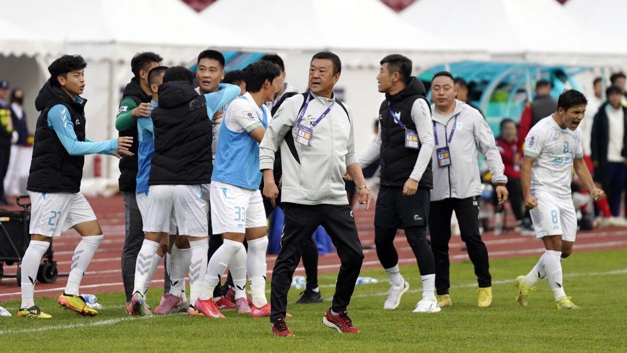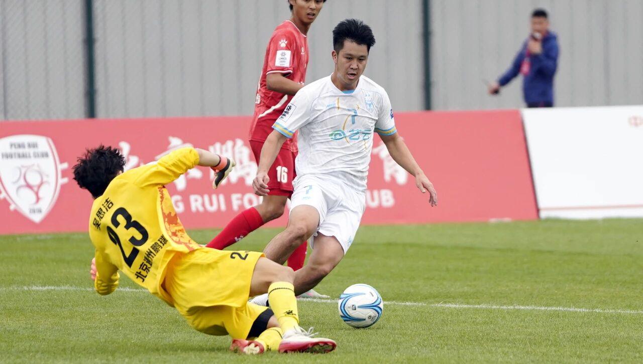 第35分钟,张达驰下底传中,汤郡豪门前抢点射门得手,将比分扳平为2-2,比赛进入白热化阶段。