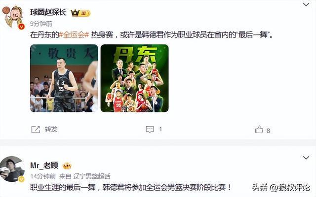 然而,仅仅一个月后,在辽宁男篮官宣送别韩德君之后,有消息传出,辽宁体育局希望韩德君能够复出,代表辽宁男篮出战全运会阶段的比赛。