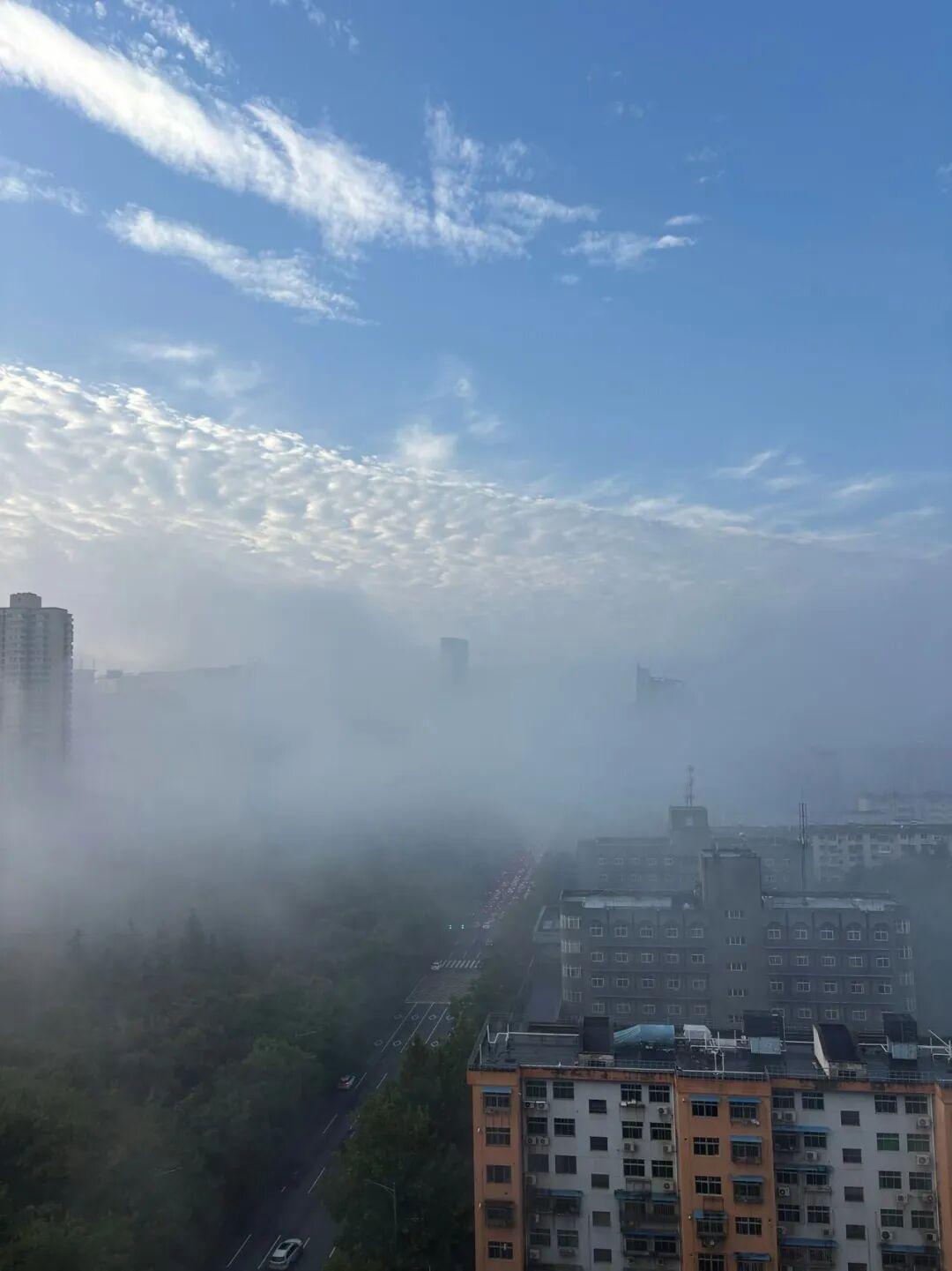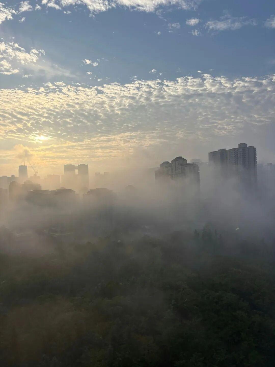 30层高楼在云海中若隐若现,街道化作水墨画卷,早高峰车流化作流动的光带。市民纷纷晒出窗外“天宫”景致,直呼“随手拍都是大片”!