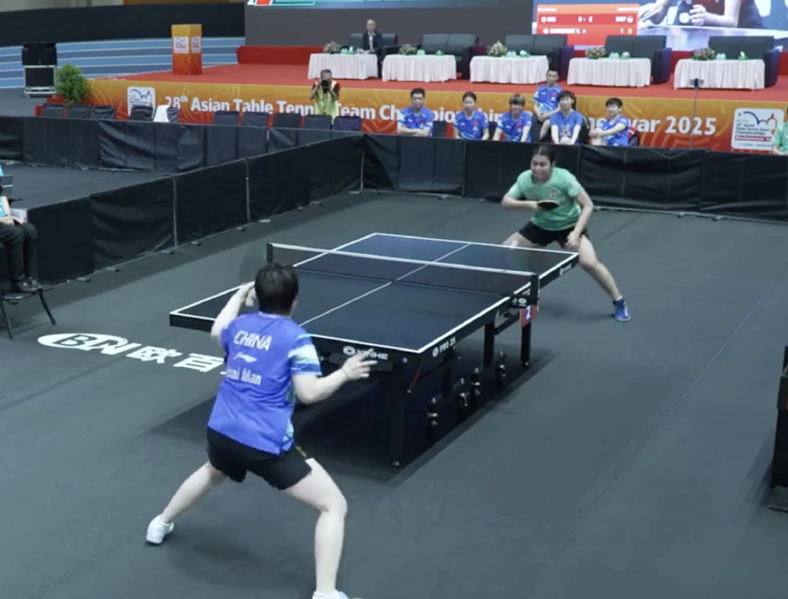 第28届亚洲乒乓球团体锦标赛女团1/4决赛激战正酣,中国女团与泰国队展开了一场精彩对决。首盘比赛,奥拉万·帕拉南以0-3不敌中国选手王曼昱,为泰国队先失一城。紧接着,第二盘素塔西尼·萨维塔布特也以0-3的比分负于孙颖莎,中国女团迅速取得2-0的领先优势。