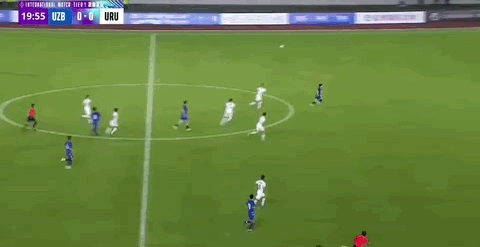第20分钟,乌兹别克斯坦发动了一次有威胁的进攻,他们挑传打身后,试图撕开乌拉圭的防线。然而,乌拉圭门将伊斯雷尔提前出击,成功将球破坏,化解了这次危机。