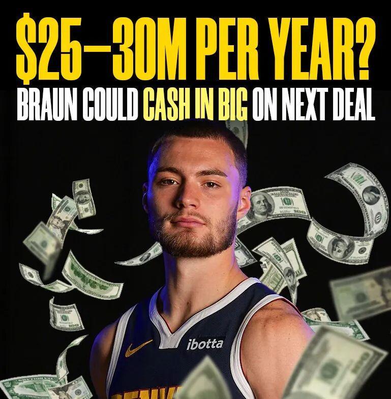 由于是2022届的新秀,布劳恩今夏也面临提前续约的问题。然而,他和掘金并没有谈拢。最新的消息是,名记Jake Fischer报道,布劳恩的下一份合同年薪预计将达到2500万-3000万美元。此前ESPN知名薪资专家Bobby Marks也这么评价布劳恩:“他(布劳恩)的续约合同金额至少为每年3000万美元。”