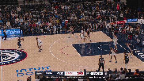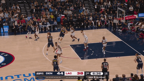 掘金也试出来了。他们在第二节让约基奇和瓦兰丘纳斯同时在场,画面出乎意料的美。约基奇能扮演空间4号位的角色,在篮下和瓦兰挡拆后上提,高低位都是进攻机会。