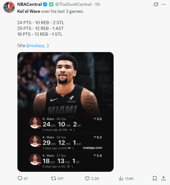 最近的三场比赛,韦尔场均贡献23.7分11.7篮板1抢断1盖帽,投篮命中率超过56%,三分命中率也保持在50%的高水平。这样的数据表现,无疑让他成为了热火队内最耀眼的明星之一。