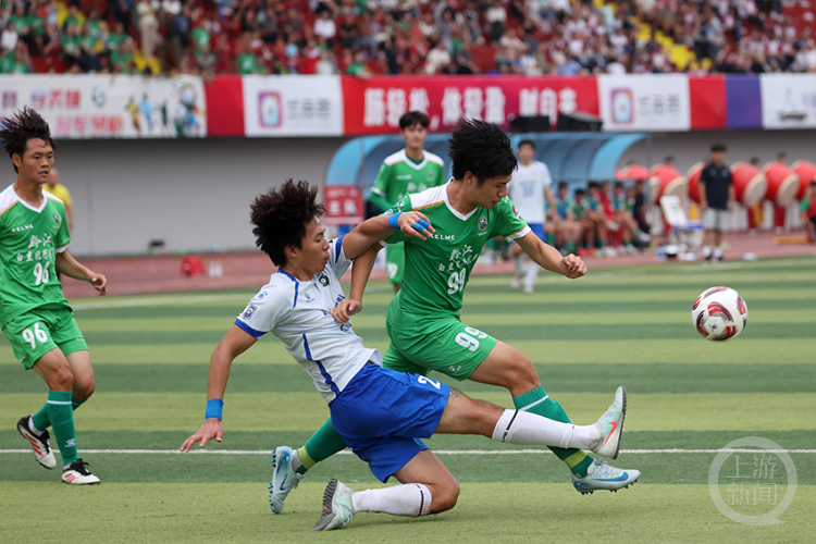 10月12日下午,2025重庆城市足球超级联赛渝东南武陵山区赛区第二轮比赛在黔江区体育场正式拉开帷幕。主场作战的黔江白垩纪恐龙队(绿衣)迎来了他们的渝超联赛主场首秀,对手是实力不俗的武隆乐源队(白衣)。这场比赛吸引了众多球迷的关注,现场气氛热烈。