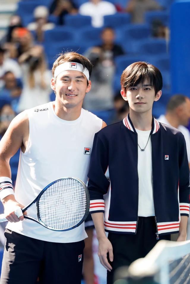 有趣的是,易烊千玺是FILA品牌全球代言人,而与他赛前互动的布云朝克特,正是FILA近期官宣的中国首位网球代言人。