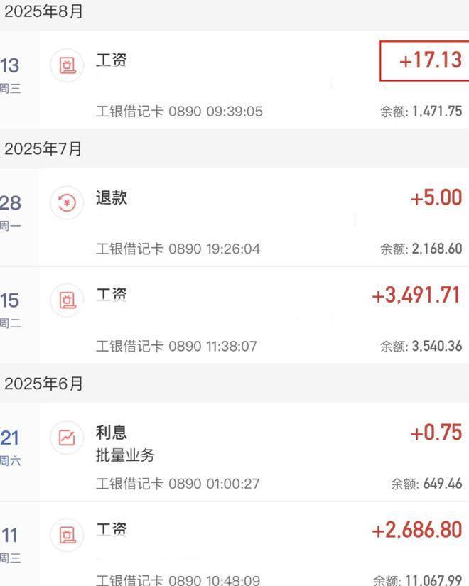 近日,一位985工科女硕士的薪资自曝引发全网热议。这位毕业于热门专业、就职于知名企业的硕士生,在工作一年后晒出17.13元的工资条,直言"我的未来一片灰暗,担心自己活不过25岁"。数据显示,其近三个月收入分别为17.13元、3500元和不足3000元,银行卡余额长期徘徊在千元边缘。