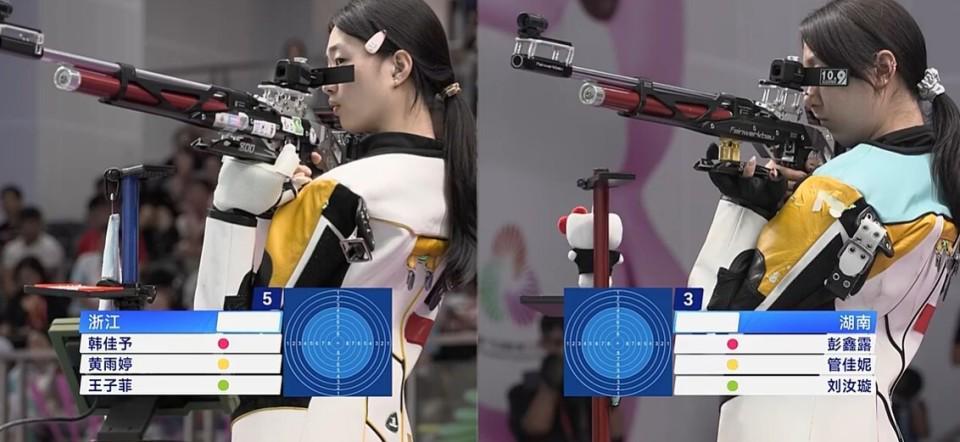 决赛中,浙江队派出韩佳予、黄雨婷和王子菲三位选手,湖南队则由管佳妮、刘汝璇、彭鑫露出战。资格赛阶段,浙江队以1903.6环的超世界纪录成绩排名榜首,湖南队1899.1环的表现同样可圈可点。