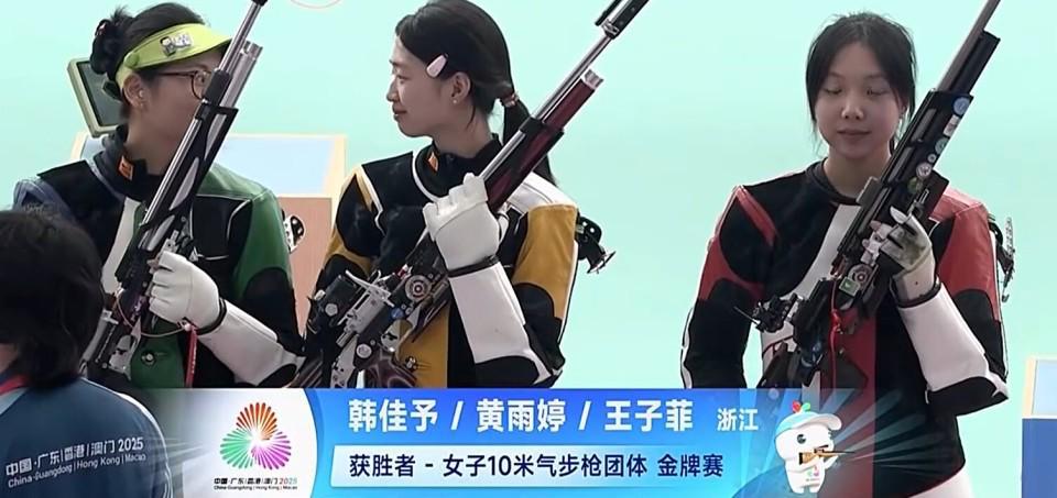 10月14日,第十五届全运会女子10米气步枪团体决赛迎来巅峰对决。在资格赛中以超世界纪录成绩晋级的浙江队,凭借稳健发挥以16-12战胜湖南队,成功摘得该项目金牌。备受关注的“阿条姐”黄雨婷收获个人全运会首金,队友韩佳予则斩获本届赛事第2枚金牌。