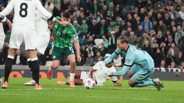 德甲赛事激战正酣,10月14日的一场焦点战中,德国队以1比0的比分客场战胜北爱尔兰。本场比赛中,门将鲍曼发挥出色,多次做出关键扑救,力保球门不失。
