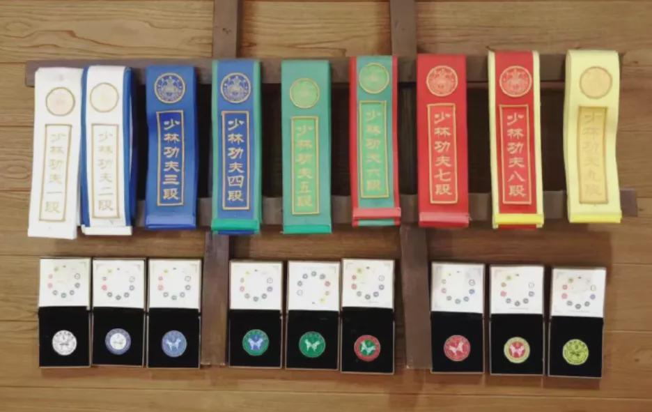 这个少林功夫段品制,是评价习练者少林功夫水平的标准,分段位、品阶、荣誉品阶。申请人考核成功后,由少林功夫段品制考评机构颁发授予相对应证书、徽章、腰带与服装。