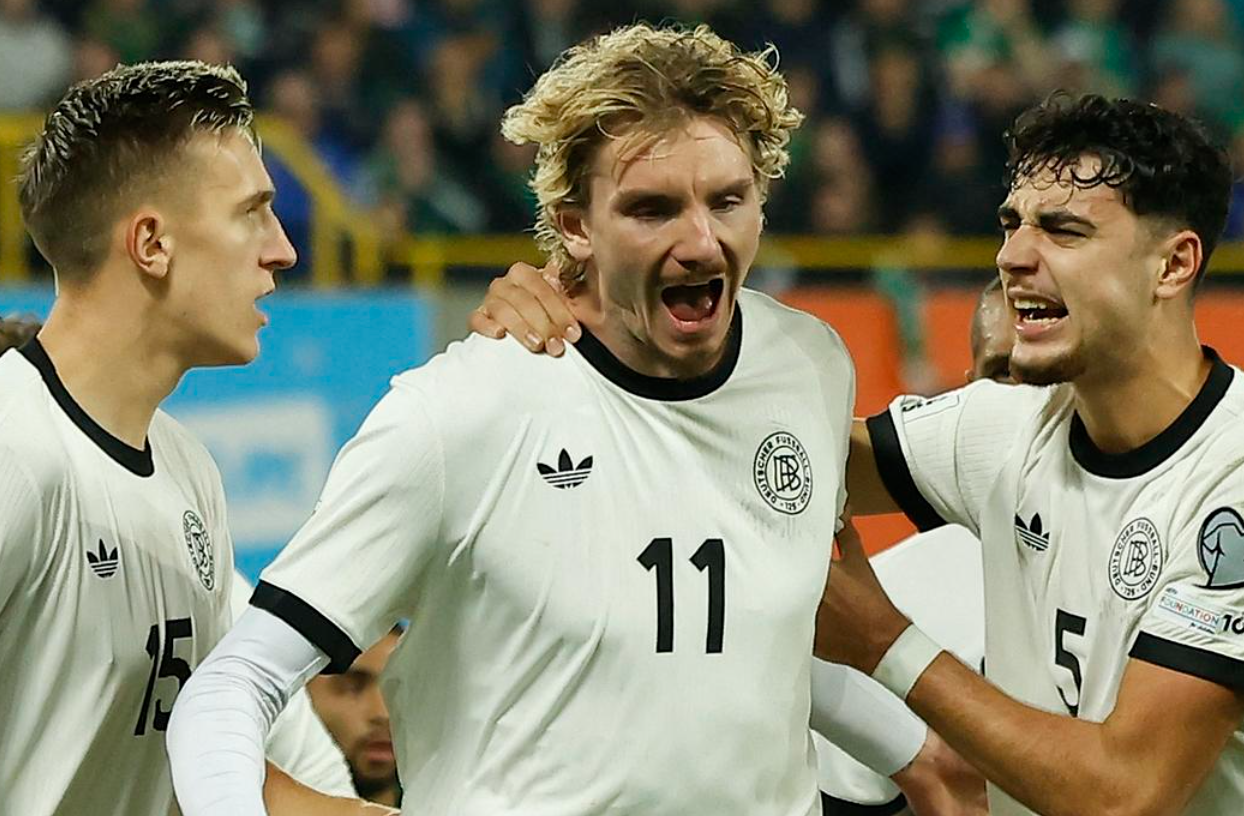 在世界杯欧洲预选赛第1阶段的一场焦点小组赛中,德国队做客挑战北爱尔兰。此前3轮小组赛,德国队取得2胜1负的战绩,虽然首战意外负于斯洛伐克,但随后连续击败北爱尔兰和卢森堡。北爱尔兰同样以2胜1负的战绩紧追其后,双方首回合交锋中德国队以3-1胜出。此番再战,德国队志在必得,最终凭借英超球星沃尔特马德的制胜头球完成双杀。