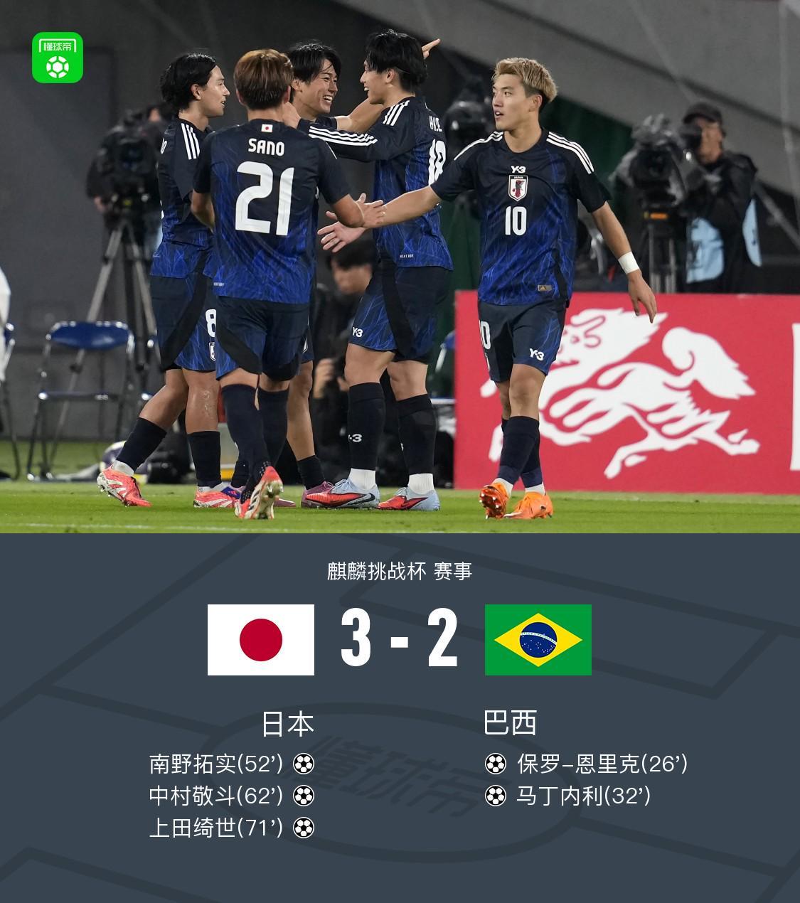 北京时间10月14日,在麒麟挑战杯赛事中,日本队与巴西队展开了一场跌宕起伏的对决。这场比赛不仅展现了双方球员的高超技艺,更因日本队从0-2落后到3-2逆转的壮举而备受瞩目。
