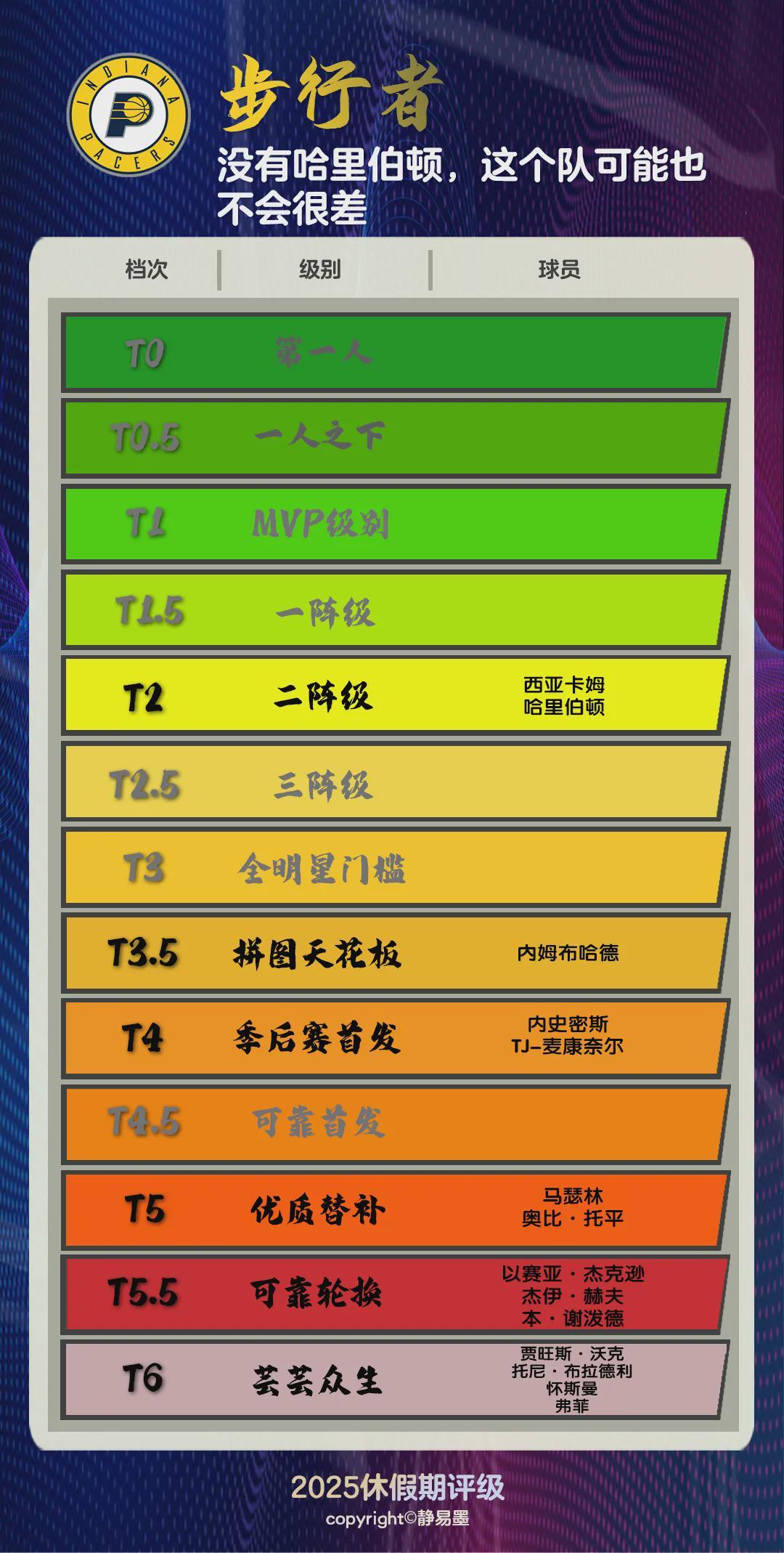 步行者完蛋了吗?其实从各大媒体的赛季预测以及专业分析来看,大家似乎并不这么悲观。在对步行者完成球员评级后,我也相对乐观。这支球队向来以球员整体水准高而闻名,即便暂时失去哈利伯顿,又彻底告别特纳,他们仍有不少可战之将。步行者拥有4名具备季后赛首发级以上实力的球员,而且中后段轮换阵容也十分管用。除此之外,球队还有一些极具成长潜力的年轻人,像马瑟林、贾旺斯·沃克和谢泼德。倘若这些人能取得一定进步,便可在一定程度上弥补核心缺席带来的战力损失。