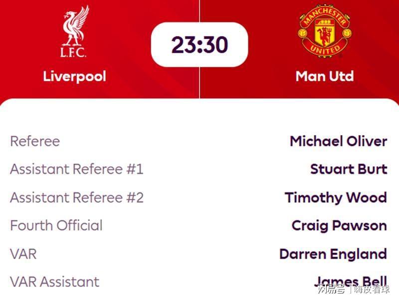 根据英超官网的最新消息,利物浦与曼联的这场双红会,将由迈克尔·奥利弗担任主裁判,助理裁判为斯图尔特·伯特和蒂姆·伍德,第四官员是克莱格·鲍森,VAR裁判为达伦·英格兰,VAR助理为詹姆斯·贝尔。这一裁判团队对于球迷来说并不陌生,他们多次参与重大比赛的执法工作。