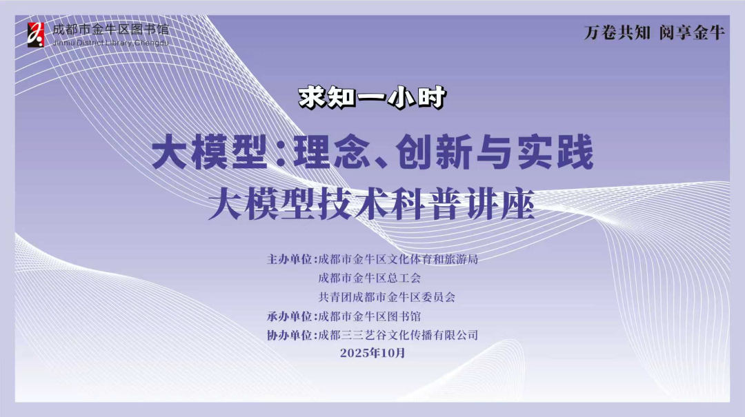 内容:特邀电子科技大学重量级AI专家周涛亲临“求知一小时”公益讲座告别独自摸索和碎片化信息。大咖带你直击技术核心轻松理解大模型的运作奥秘透视应用全景看清AI如何重塑各行各业厘清伦理边界探讨如何负责任地发展AI。
