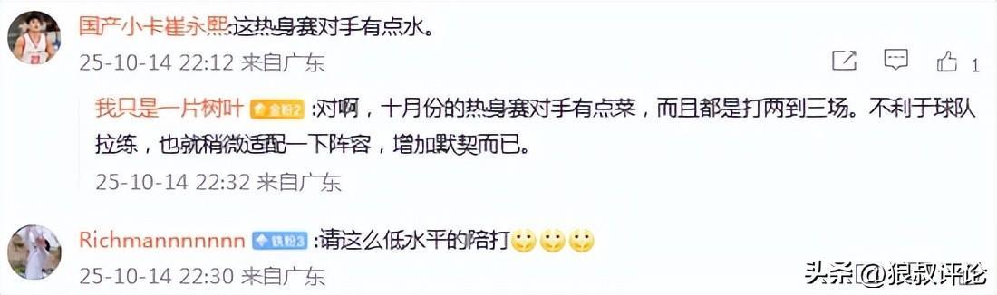 接下来,广东男篮还将有多站热身赛上演。随着沈梓捷等内线球员的跟队磨合,广东男篮能够派出的核心阵容将更加豪华。然而,对于热身赛对手的挑选,有观点认为继续打这种实力差距较大的球队意义并不大,或许更应该考虑一些同档次且有全运会任务的对手。