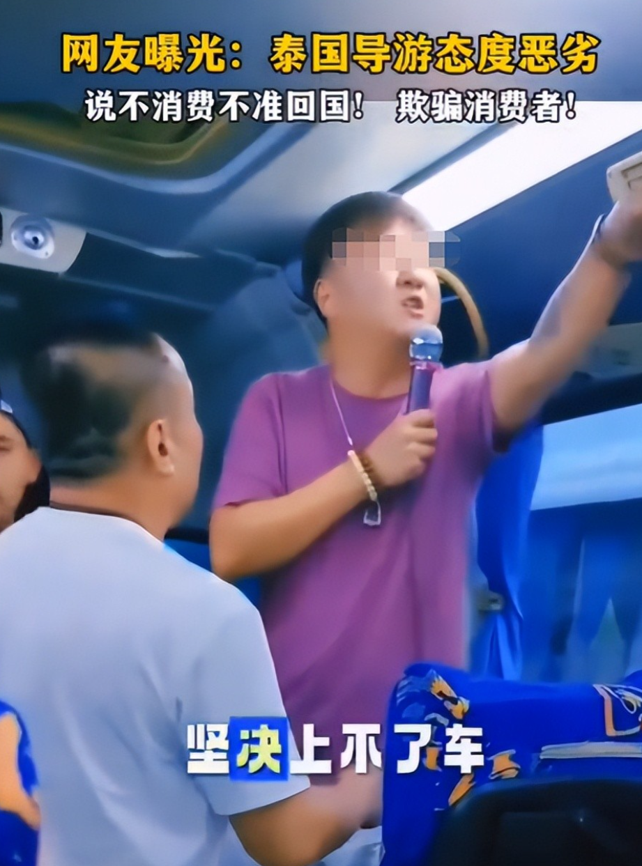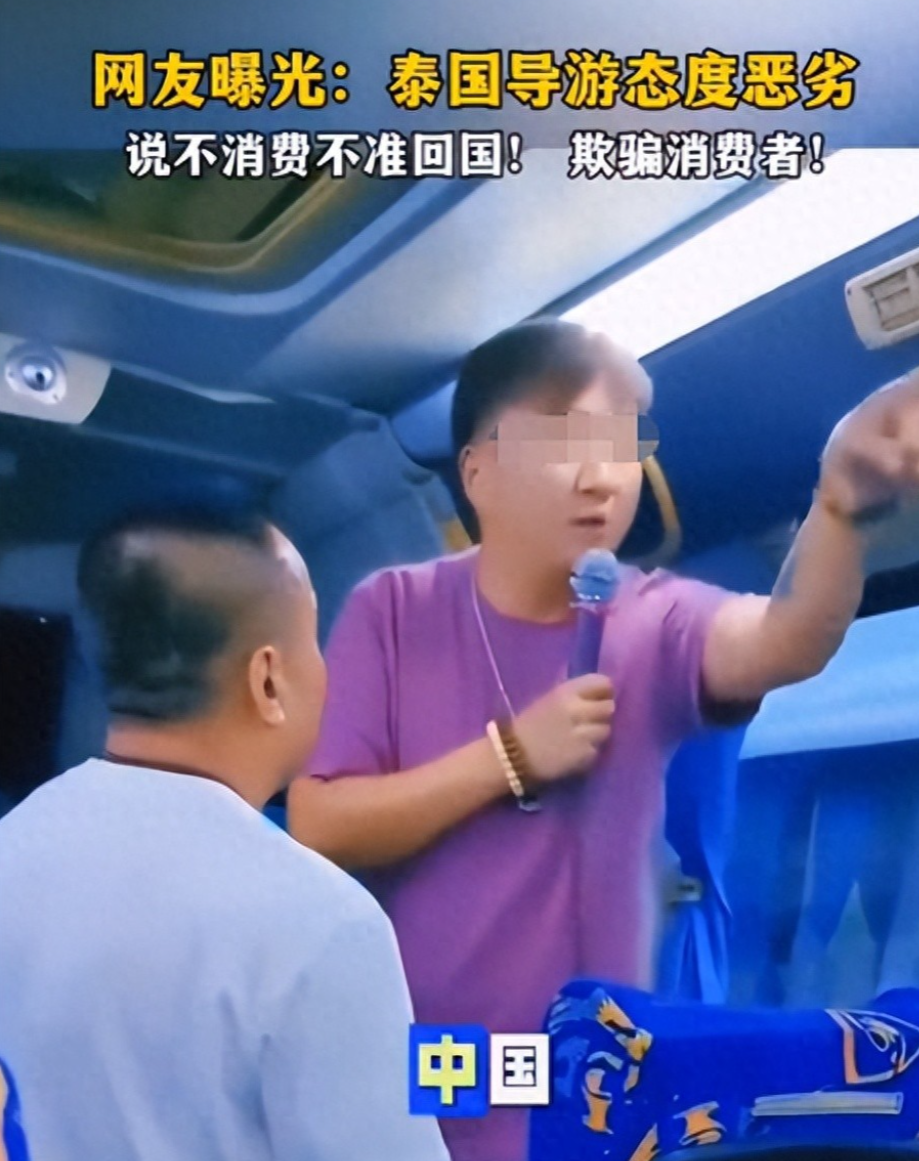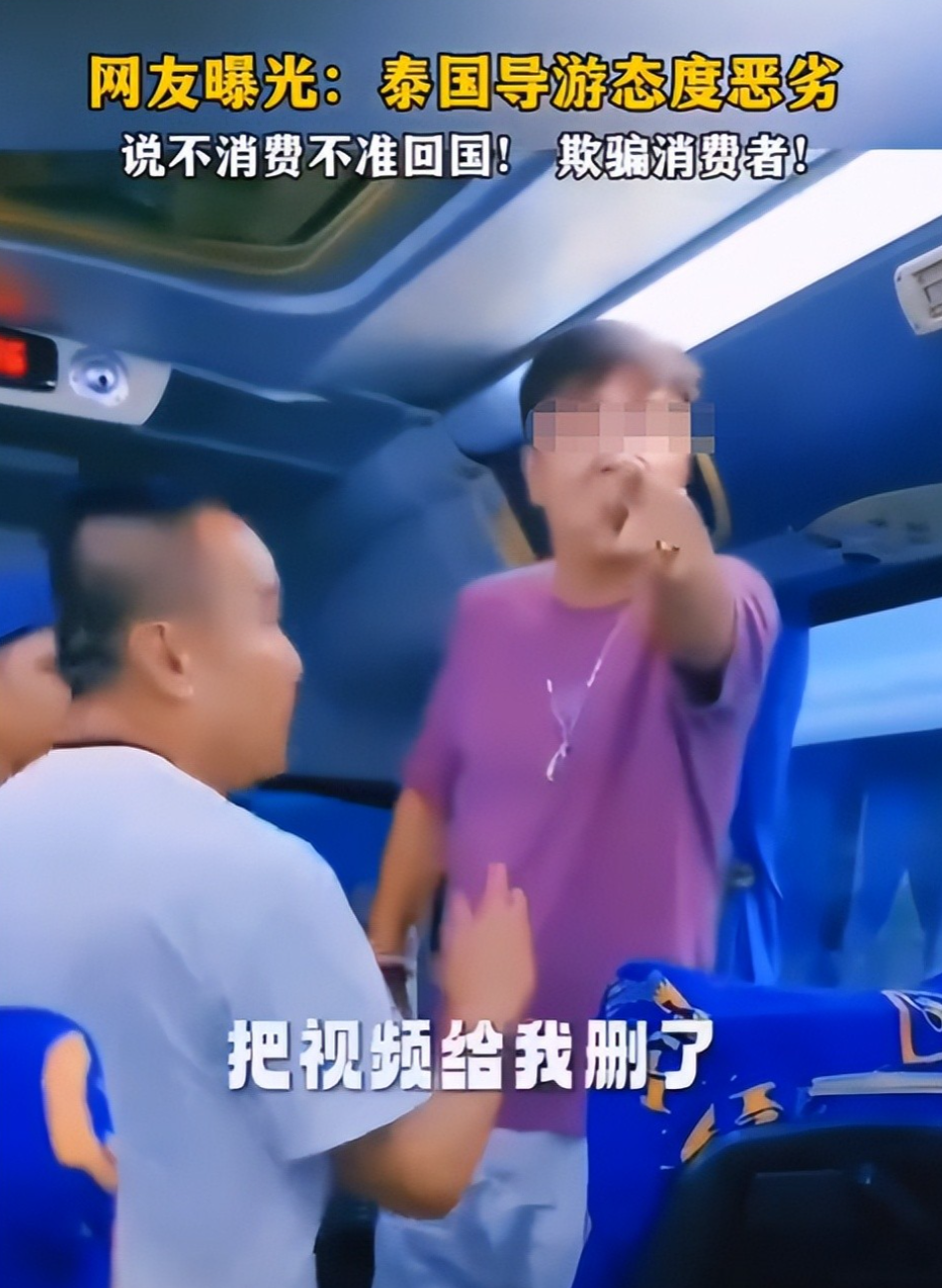 近日,一段泰国旅游大巴上的视频在社交平台上引发了广泛关注。视频中,一名操着中文的导游站在过道上,怒气冲冲地指着满车游客喊道:“等下到了免税店,谁不消费就别想上车!” 见有游客小声反驳,他更是放出狠话:“敢不买?信不信我让你们回不了中国!” 有游客怕后续麻烦,悄悄拿出手机记录,没想到被导游当场发现,他冲上前手指镜头大吼:“删了!现在就删!” 那副嚣张模样,让满车游客又怕又气。