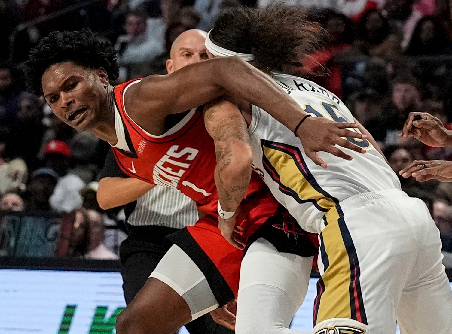 末节比赛,两队开始第三阵容的比拼。火箭队派出戴维斯、霍勒迪、卡佩拉、杰夫-格林和奥科吉。鹈鹕队在还剩4分55秒时将分差缩小到3分。奥科吉关键三分球命中,霍金斯抛投回应。21.9秒时,麦戈文斯两罚完成绝平。然而,霍勒迪在终场前1.8秒完成抛投准绝杀,费尔斯三分不中,火箭队险胜。