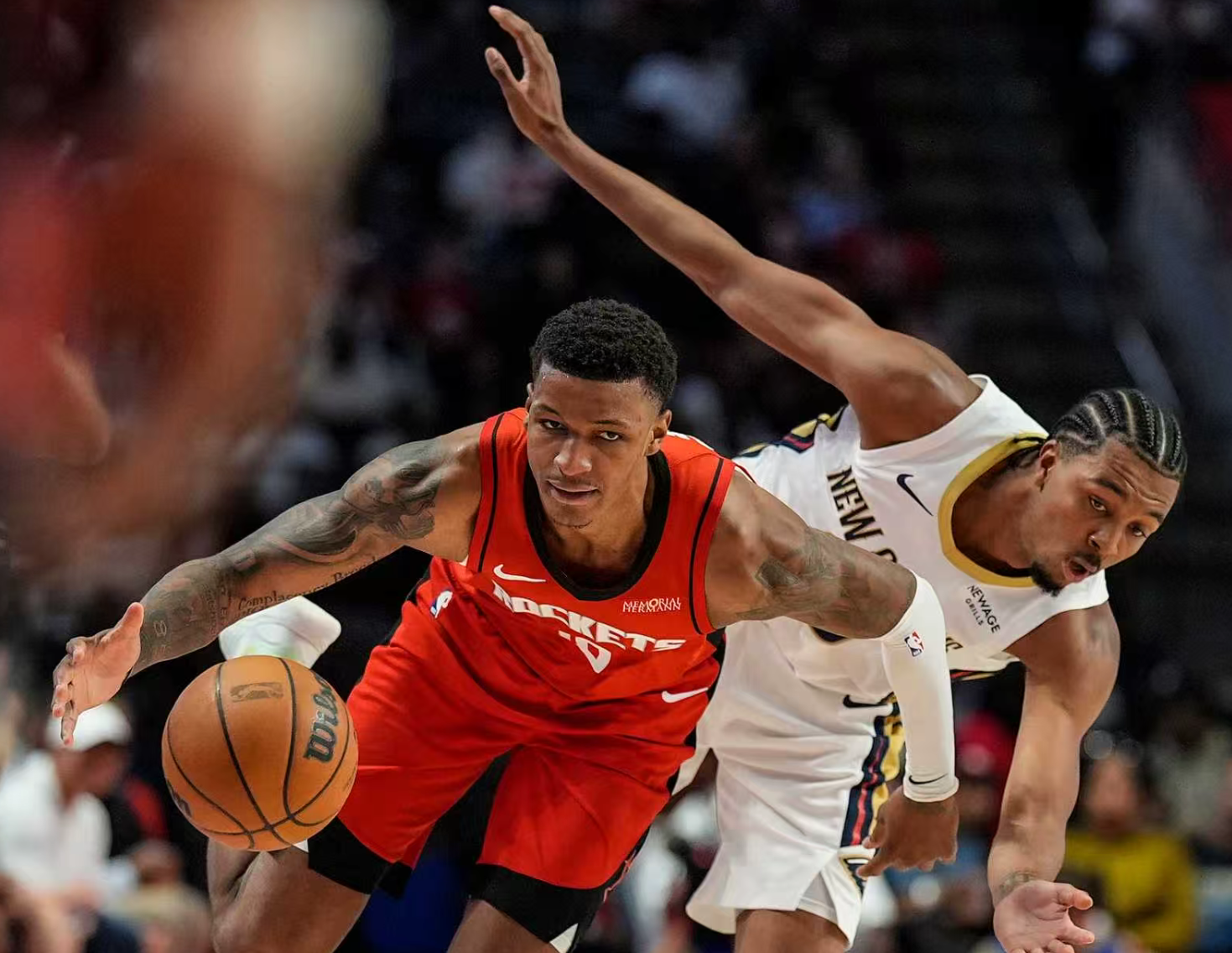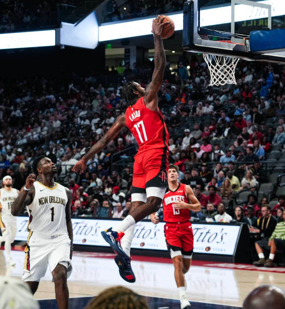 小贾巴里-史密斯本场比赛表现惊艳,身高2.1米的他在三号位上优势明显。面对鹈鹕队的防守,他展现出了出色的投篮能力,即使面对“胖虎”锡安的防守,也能直接干拔得分。全场比赛,他仅出战22分钟就高效砍下26分5篮板,成为火箭队取胜的关键人物。