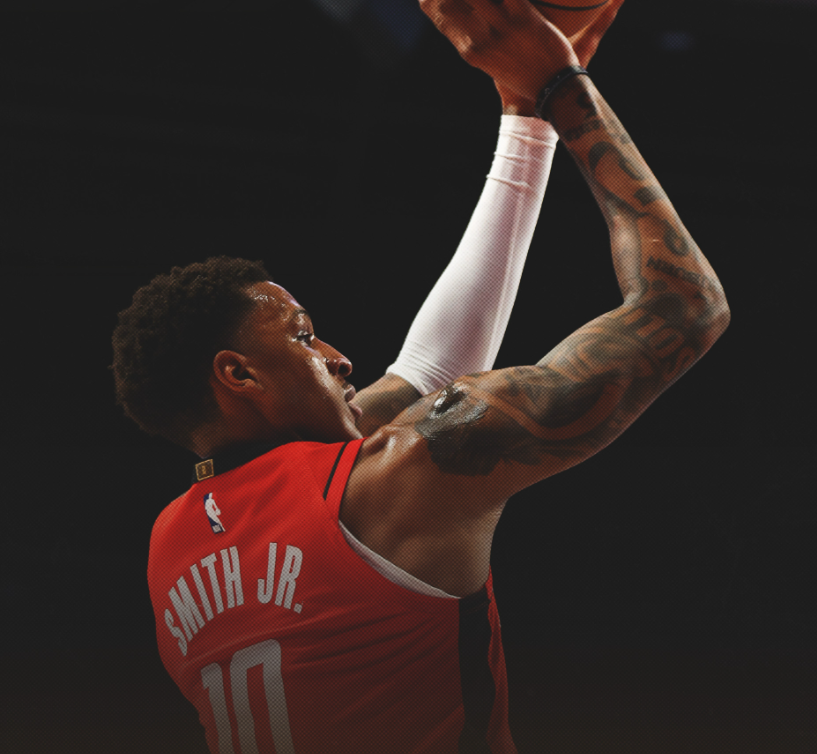 火箭队先发:阿门、杜兰特、小贾巴里-史密斯、申京、亚当斯;