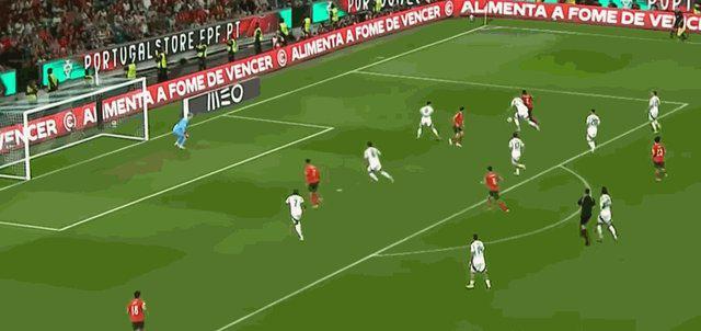 面对落后局面,葡萄牙队展开了猛烈的反扑。第22分钟,塞梅多在禁区内似传似射,后点的C罗机敏抢点,将球打进空门,葡萄牙队扳平比分。上半场伤停补时第3分钟,努诺·门德斯在禁区外送出精准的45度传中,后点的C罗再次抢点推射破门,葡萄牙队以2-1的比分完成逆转。
