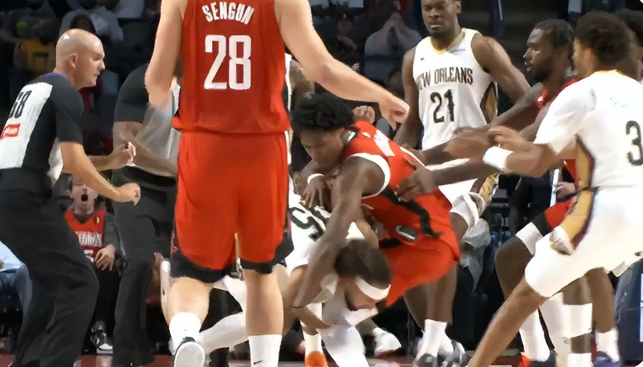 北京时间10月15日,NBA季前赛迎来一场焦点对决,休斯顿火箭以130-128险胜新奥尔良鹈鹕。本场比赛火箭主力阵容仅出战三节便打卡下班,其中二年级生阿门-汤普森表现尤为抢眼——24分钟内高效砍下21分5篮板3助攻,更令人惊喜的是他首次在实战中命中持球三分,2.01米的身高优势在一号位上展现得淋漓尽致。