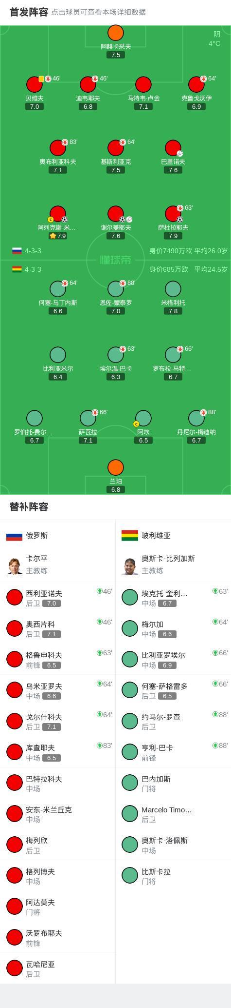 在一场备受瞩目的国际友谊赛中,俄罗斯国家队与玻利维亚国家队展开了一场激烈的较量。最终,俄罗斯队凭借出色的发挥,以3-0的比分完胜对手,展现了强大的实力。