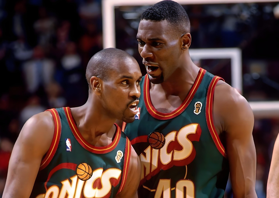 回看超音速队史,如果要挑出一支最具代表性的阵容,“手套+雨人”组合无疑榜上有名。加里·佩顿,作为NBA史上最强硬的防守后卫;肖恩·坎普,则是一个飞得比雨还高的男人。1996年,二人带队打进总决赛,虽然最终输给了乔丹领军的公牛,但这依旧是西雅图球迷心中难以抹去的辉煌时刻。