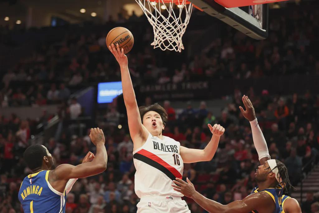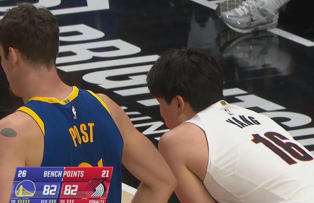 做好“工具人”,再谈进攻端。接球点开霍福德,然后杀入内线上篮命中,这样的高光球是基于他有一定的投篮能力。勇士队大概率研究了开拓者和国王的比赛,看到了杨瀚森底角三分投篮,否则老霍这种老江湖是不太可能轻易跳起的。