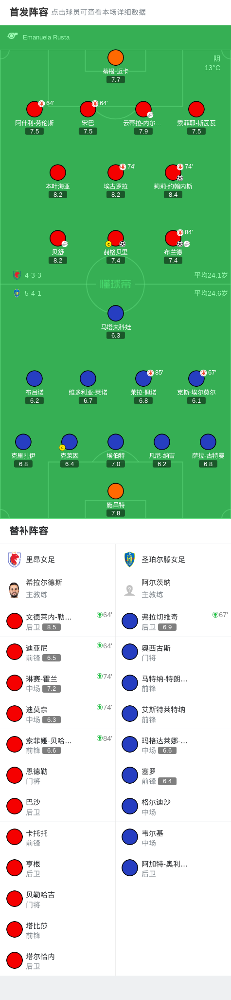 本场比赛,里昂女足在攻防两端都表现出色,控球率、射门次数等关键数据均领先于对手。圣珀尔滕女足虽然也努力寻求破门机会,但面对里昂女足的严密防守,始终未能找到有效的进攻手段。