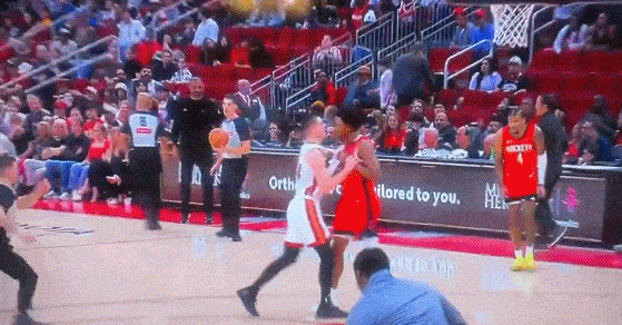 然而,这场比赛中最有意思的,莫过于第二节时阿门与老六之间的冲突了。