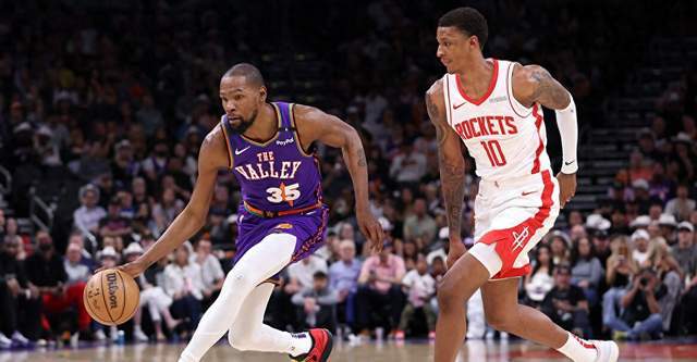 然而,“五大”阵容也并非无懈可击,球队空间感的不足成为了潜在隐患。在阿门、申京和亚当斯等非空间点球员的环绕下,史密斯承担起了第一空间投手的重任。面对杜兰特三分3中0的大空位尴尬,史密斯却挺身而出,用精准的投射为球队打开了局面。在短短22分钟内,他16投7中,三分10投4中,罚球8罚8中,砍下了全队最高的26分,同时还有5篮板1助攻1抢断1盖帽的全面数据,正负值高达+23,仿佛将自己打造成了另一个杜兰特。