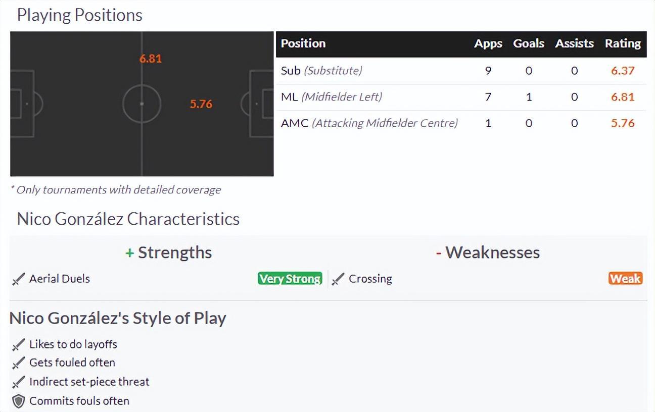 本赛季转会至马竞后,冈萨雷斯迎来了职业生涯的第二春。在这场比赛中,他不仅在左后卫位置上送出了2次精彩助攻,还制造了1个乌龙球,全场传球成功率高达92%,其表现让人不禁联想到西班牙传奇左后卫阿尔巴,堪称阿根廷版的“阿尔巴”。