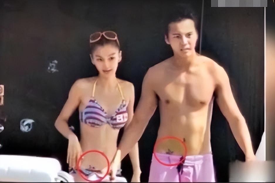 照片中,20岁的陈伟霆和16岁的杨颖彼此依偎,笑容灿烂,甚至还纹有相同部位的情侣纹身。
