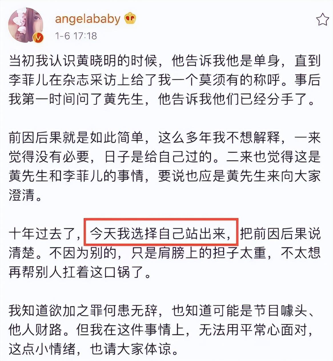 尽管黄晓明对杨颖的宠爱有目共睹,但关键时候却从没有站出来为她说过话。