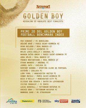 《都灵体育报》公布2025年欧洲金童奖25人候选名单。常规候选名单20人,另有5人作为“外卡”入围,外卡机制于近年引入,旨在避免遗漏潜力新星,故此特别设置“补充名单”,贝林厄姆胞弟乔布因此入围。欧洲金童奖创设于2003年,用于表彰在欧洲顶级联赛表现最为突出的21岁及以下球员,参投评委可提名5名球员,第一名计10分、第二名7分、第三名5分、第四名3分、第五名1分。