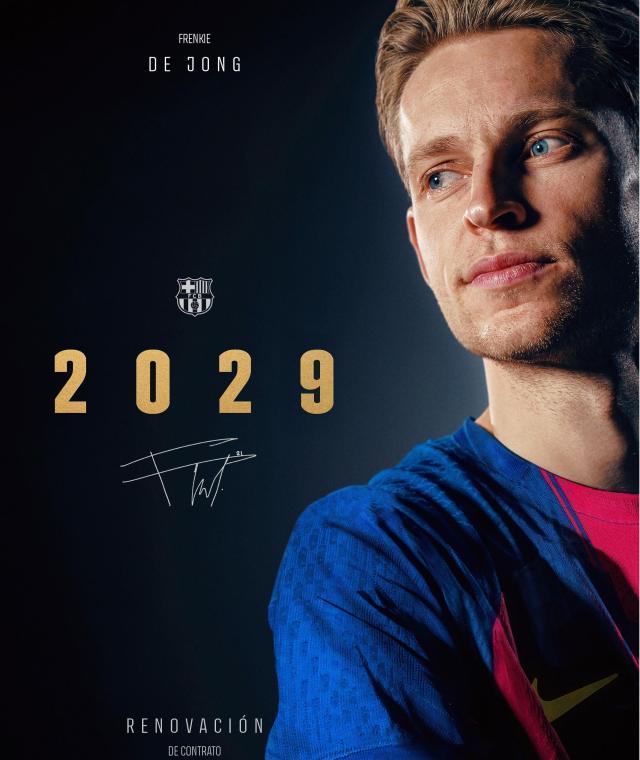 中场大将续约!官方:巴萨与德容续约至2029年,据悉解约金5亿欧