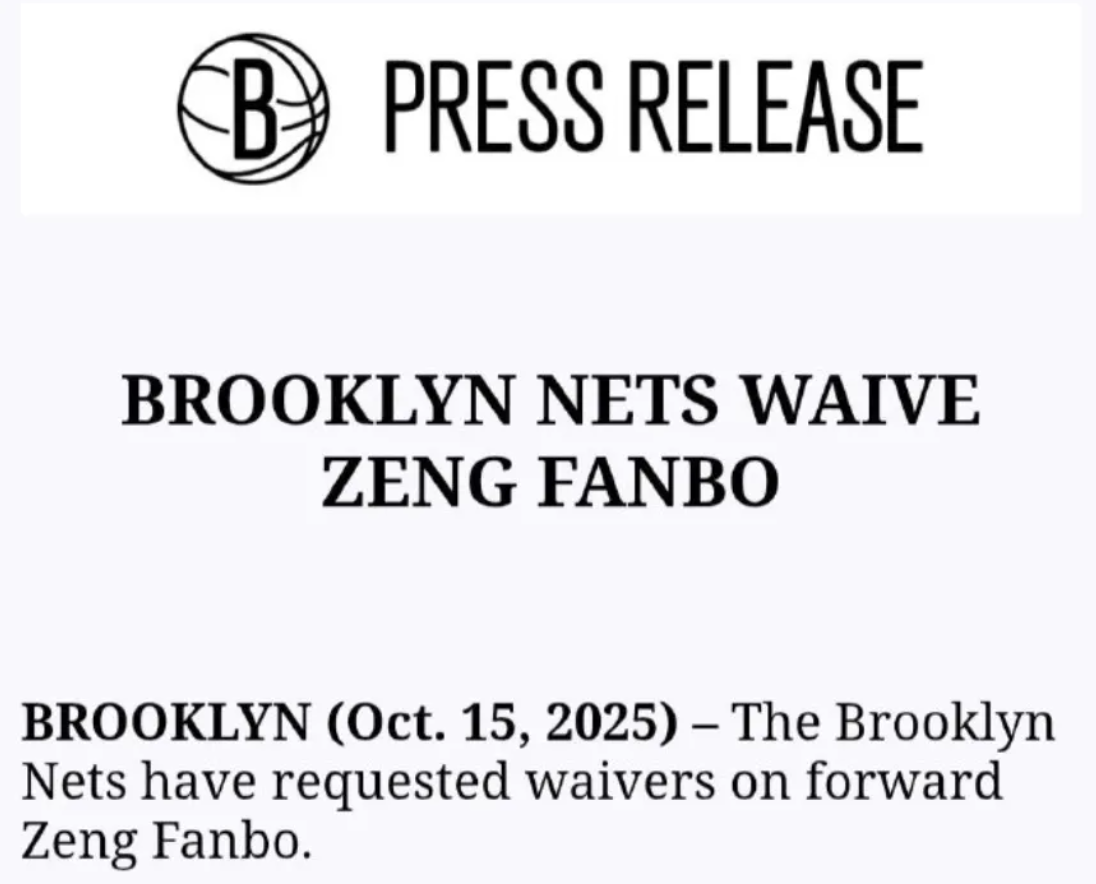 今日凌晨,布鲁克林篮网队正式发布官方声明,宣布裁掉中国球员曾凡博。这一决定引发了球迷和媒体的广泛关注,也让曾凡博的NBA之路再次蒙上阴影。