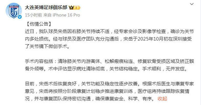 尽管大连英博已经成功保级,但接下来的四场比赛仍然至关重要,特别是主场作战。10月15日,大连英博足球俱乐部官方发布公告称,宋岳右膝关节内多处损伤,已接受微创手术。这意味着在10月19日主场迎战武汉三镇的比赛中,本土中卫的位置将依赖伊夫耶库里。面对为了保级而拼尽全力的三镇队,如果大连英博能够制定出针对性的战术安排,仍有拿分的可能。