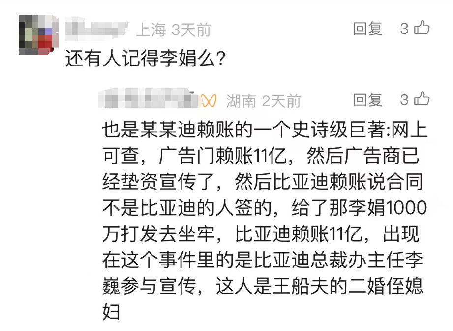 于是网友们又想起了当年的李娟门事件。当时,比亚迪也曾陷入类似的舆论危机中。然而,如今看来,比亚迪并没有从中吸取教训,反而继续我行我素。