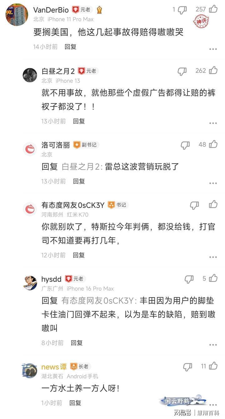 评论区中,网友的观点两极分化。有北京网友评论称:“要搁美国,他这几起事故得赔得嗷嗷哭。”另一位北京网友则表示:“不用事故,就他那些个虚假广告都得让他赔的裤衩子都没了。”