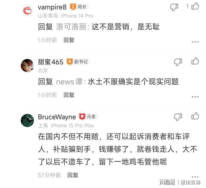 还有网友将小米与特斯拉、丰田等国际品牌进行对比,认为差别巨大。一位上海网友指出:“在国内不但不用赔,还可以起诉消费者和车评人。补贴骗到手,钱赚够了,就卷钱又走人,大不了以后不造车了。”