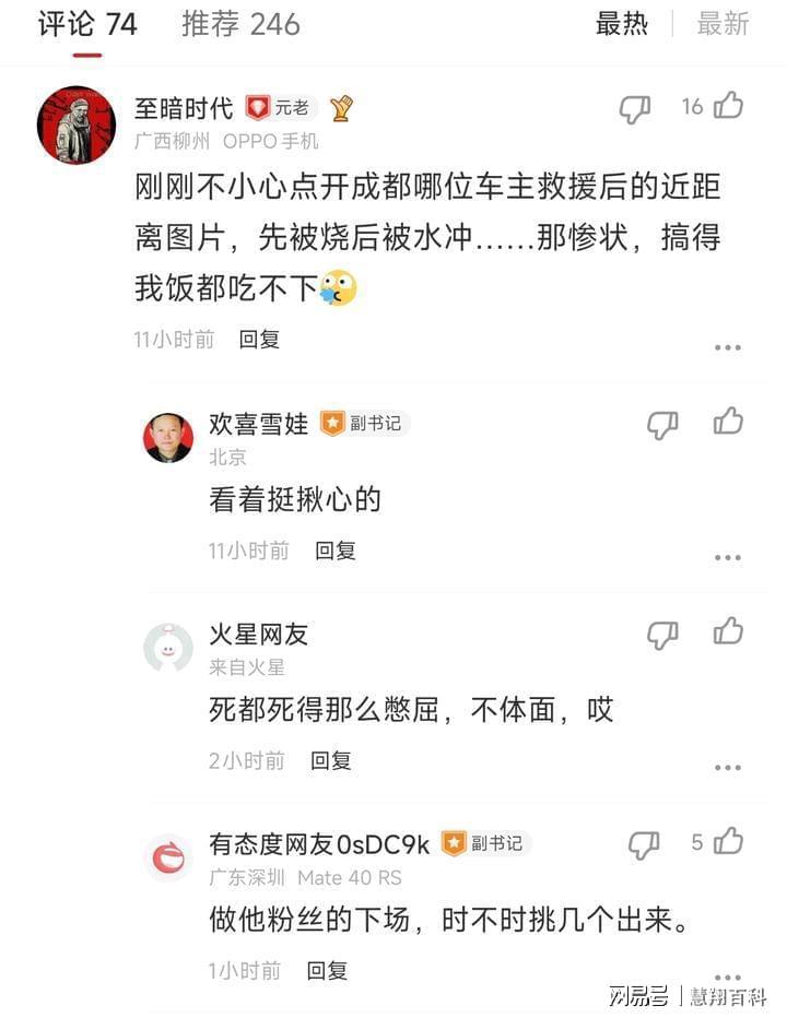 此外,有网友提起了成都那位出事车主的惨状,表示“死都死得那么憋屈,不体面”。但也有网友指出,该车主是酒驾,而酒驾是法律明令禁止的。