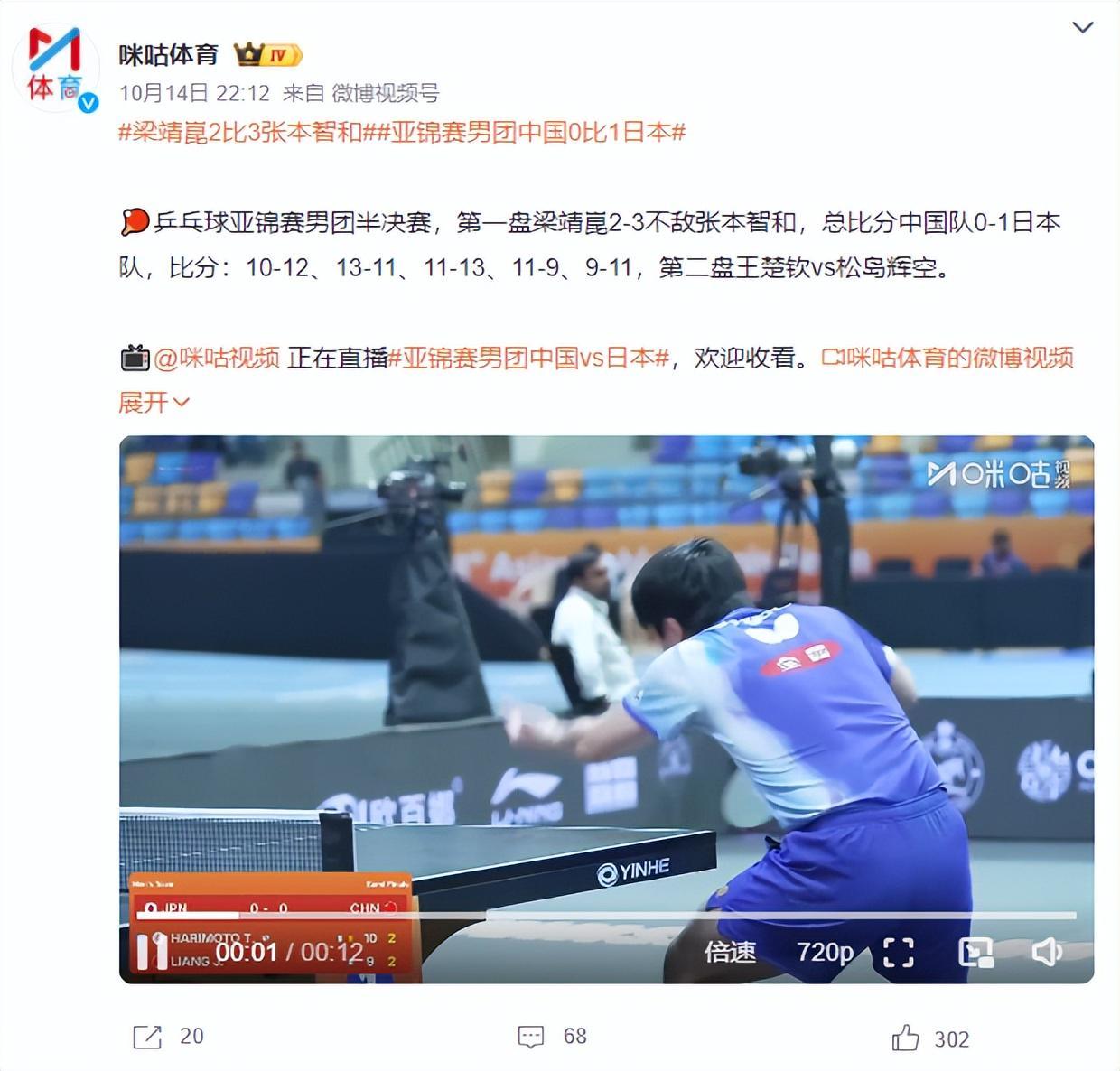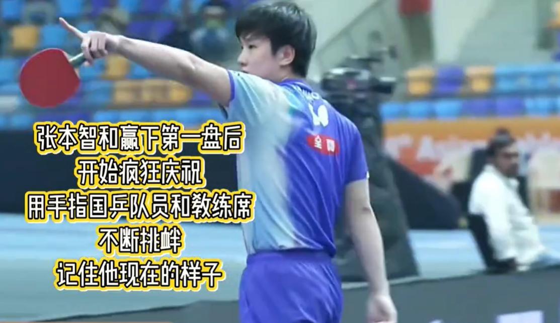 亚锦赛男团半决赛,张本智和只是首盘赢了梁靖崑,就那样狂,还公然挑衅。