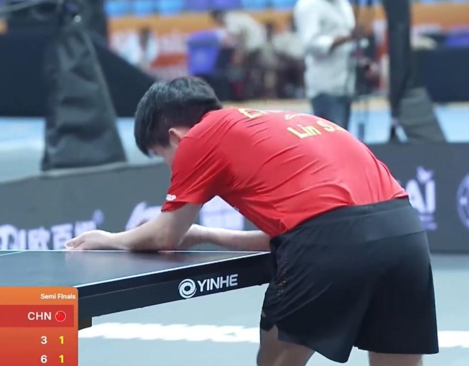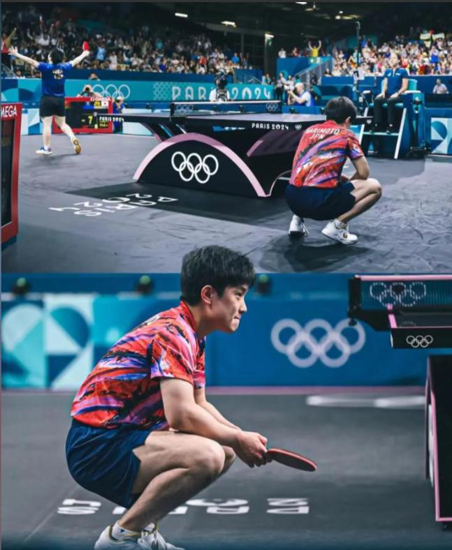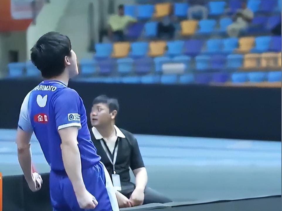 男单领先樊振东时可谓嚣张至极,被逆转后只能蹲地上了。