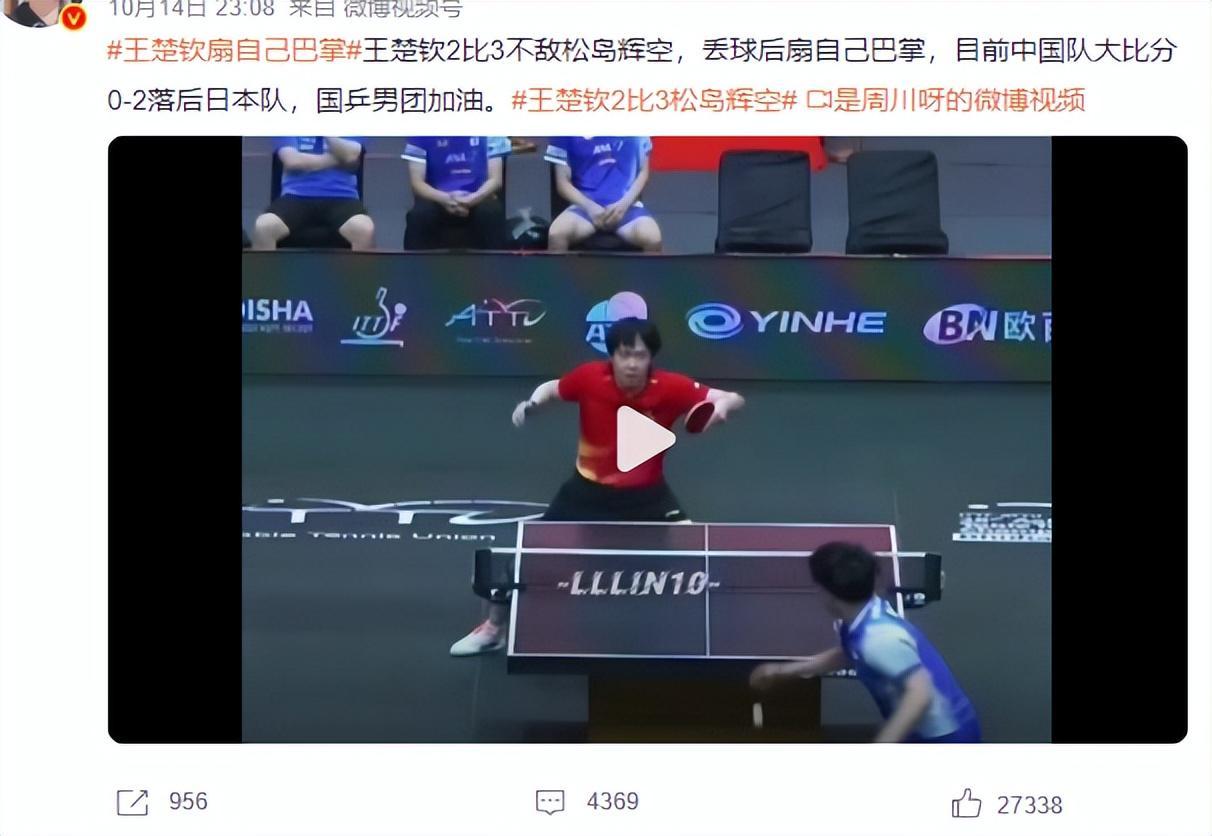 更让人难以接受的是王楚钦第二盘也罕见输给了松岛辉空。