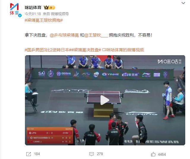 可谁能想到,日本男队2比0领先,国乒男队依旧能绝地反击。
