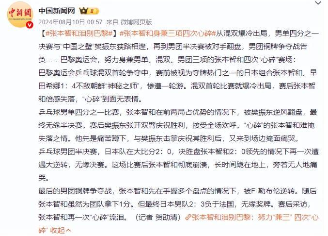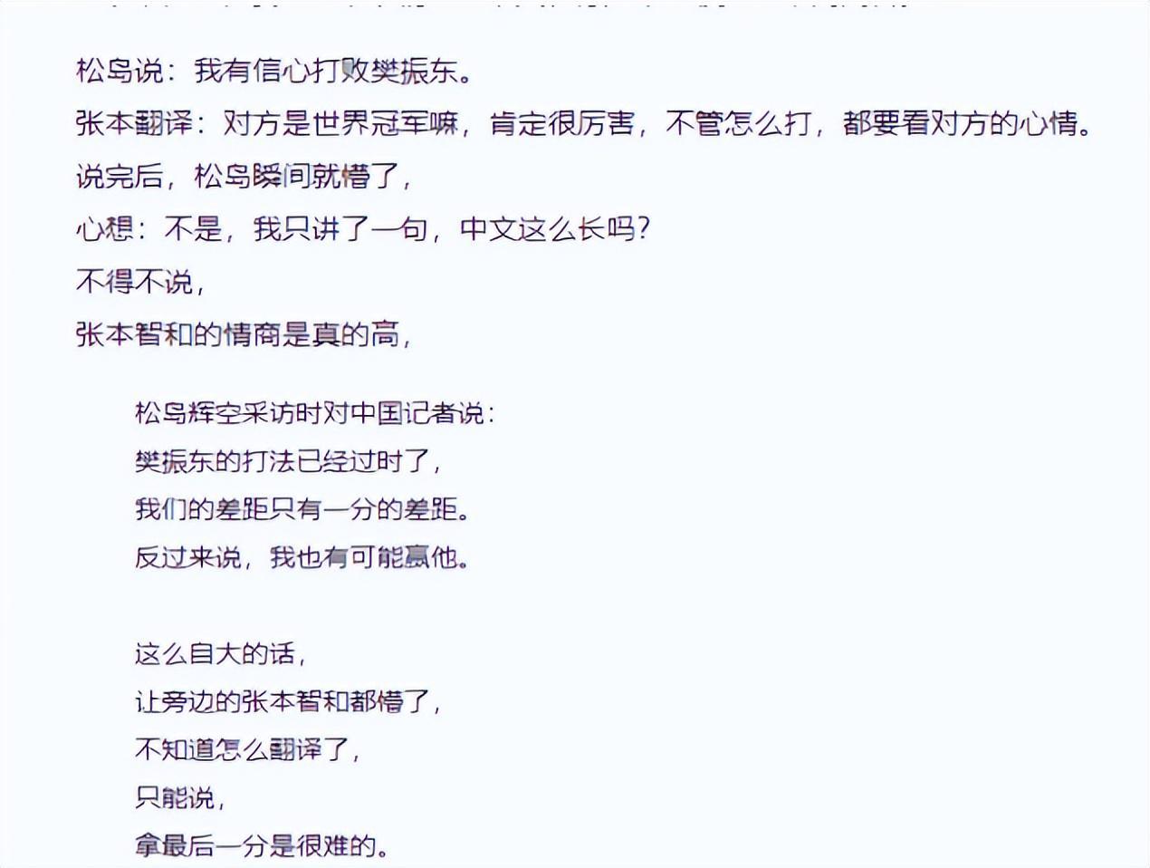 某种程度上说,张本智和他们在2比0领先之际让国乒3比2逆转获胜。